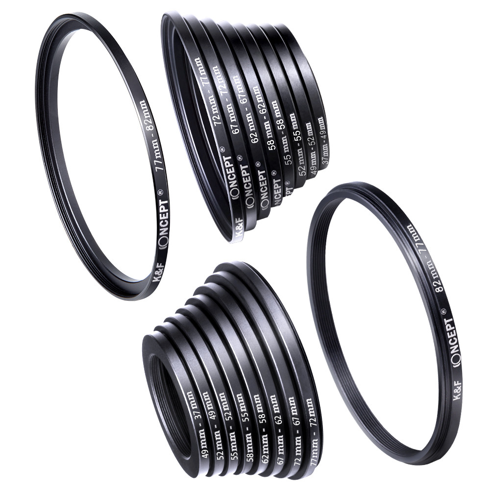 Conjunto Anel Adaptador Step Down / Step Up 82mm A 37mm – Kit 18 Anéis